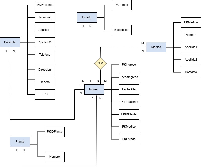 b) Un paciente puede ingresar varias veces en el hospital y tener asignado en cada ocasión diferentes médicos